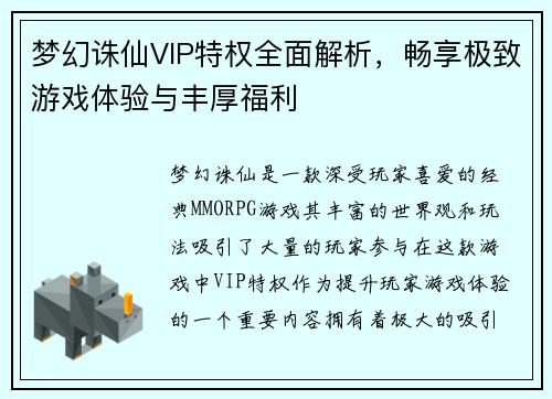梦幻诛仙VIP特权全面解析,畅享极致游戏体验与丰厚福利