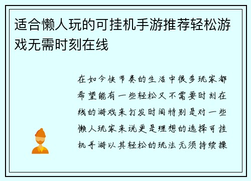 适合懒人玩的可挂机手游推荐轻松游戏无需时刻在线