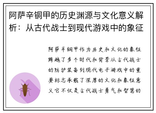 阿萨辛铜甲的历史渊源与文化意义解析:从古代战士到现代游戏中的象征